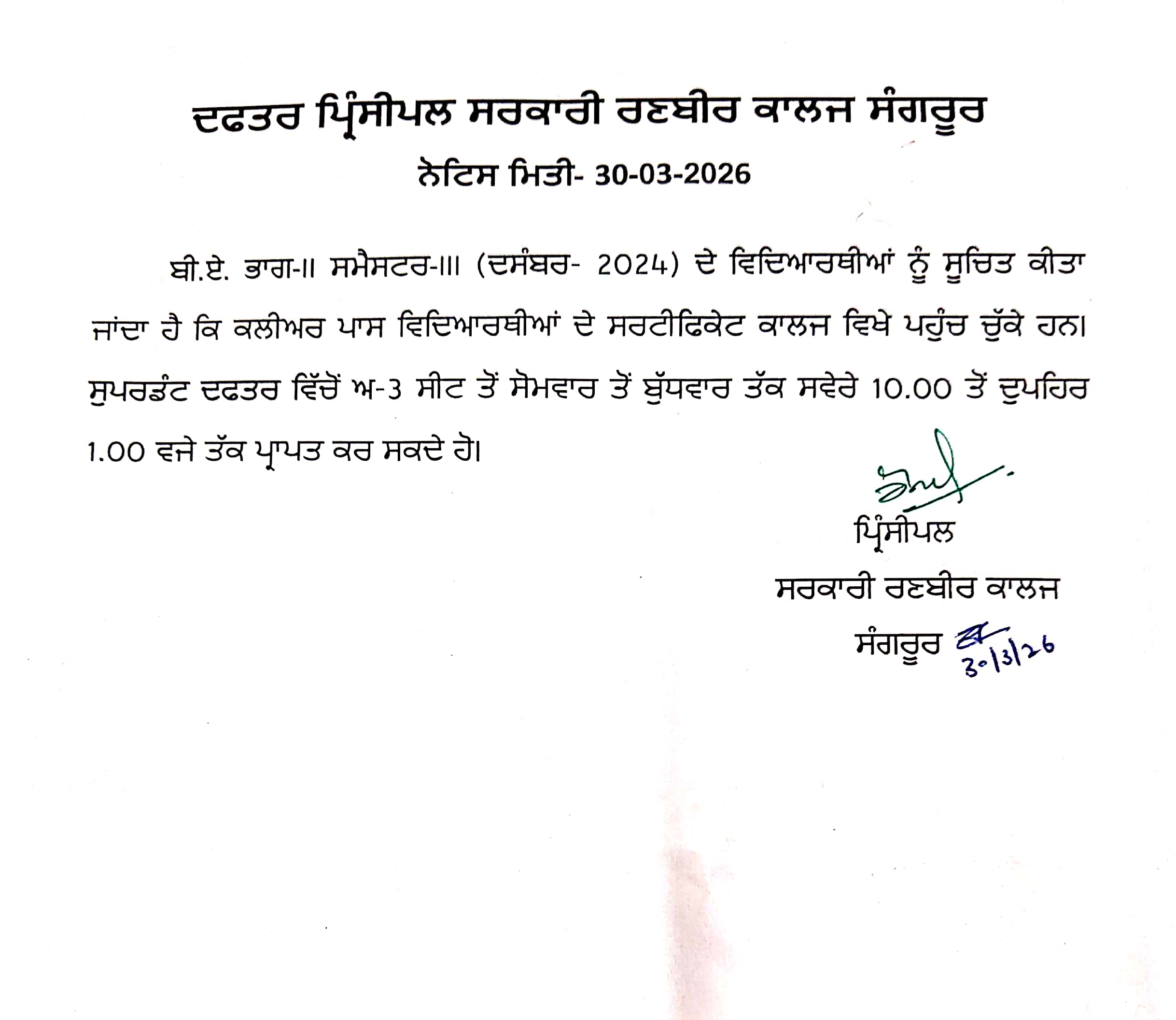 Welcome to Government Ranbir College Sangrur